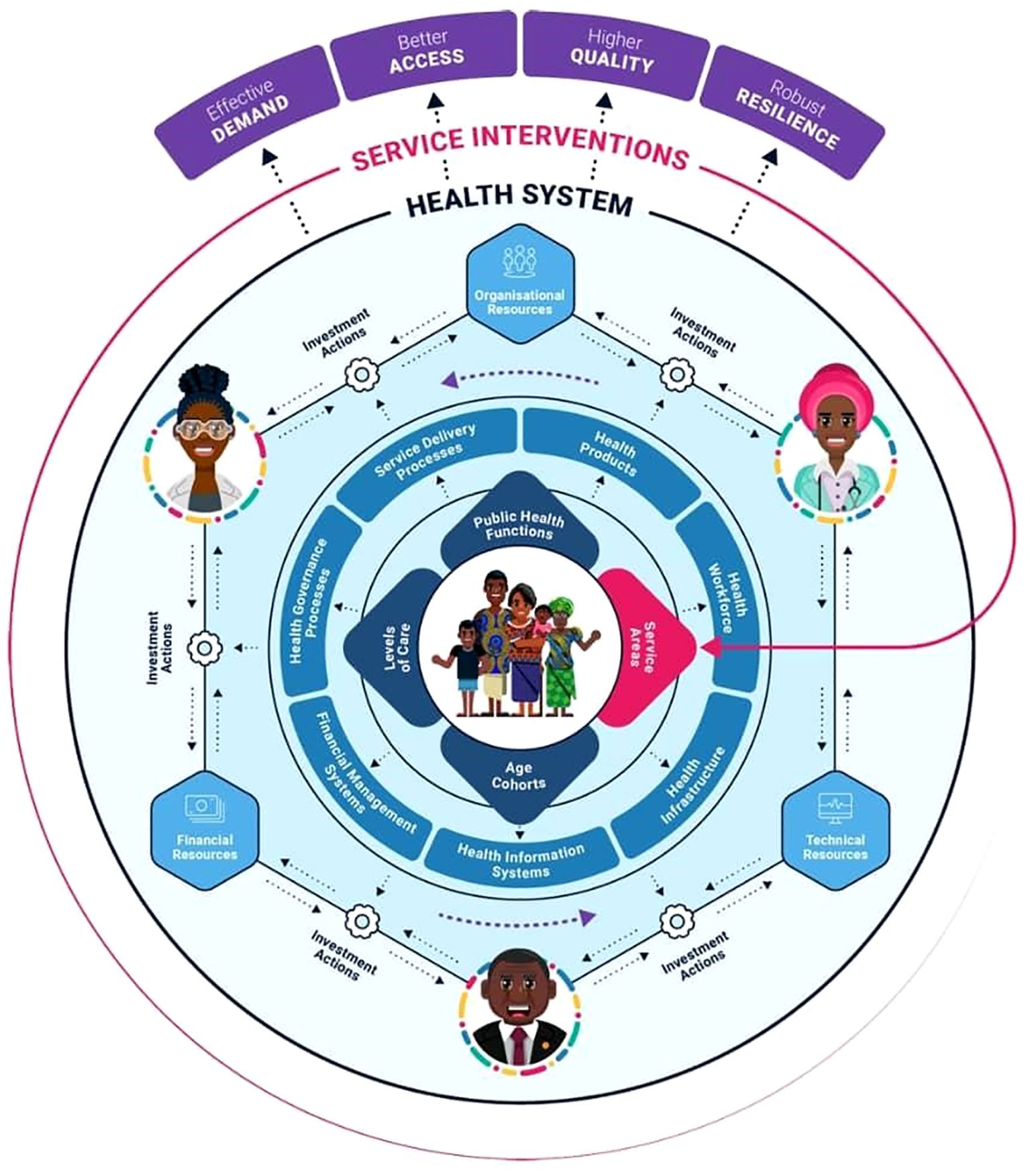 Figure 1. An illustration of the complex interplay of the entities within a health system framework (2). The complex interplay of the health system framework.