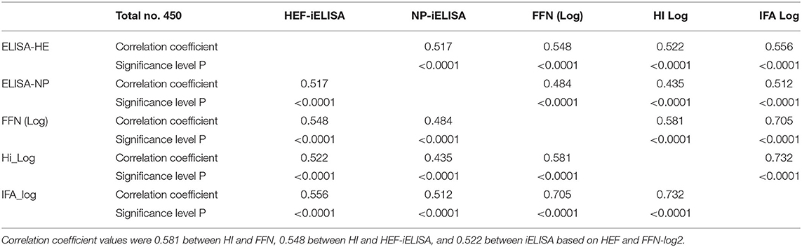 Statistical Correlation Among HI, FFN, and HEF-iELISA
