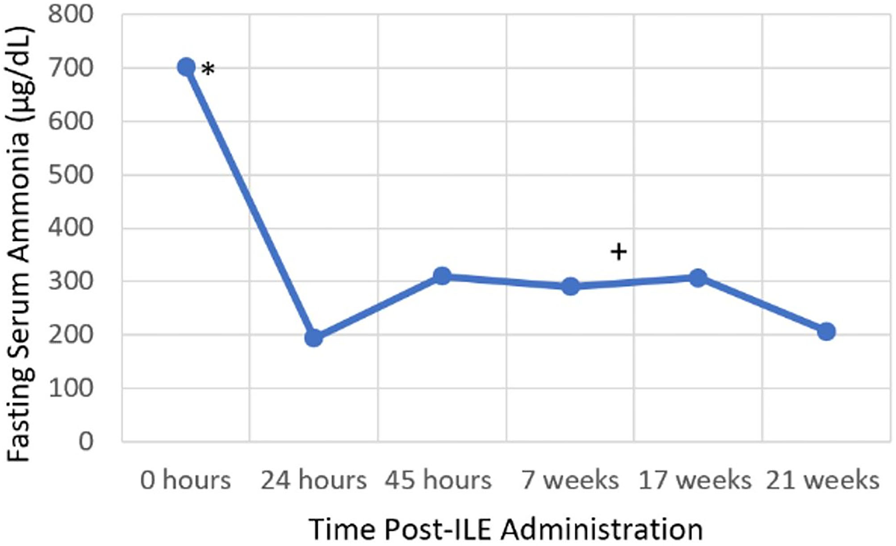 Serial blood ammonia concentration. *Intravenous lipid emulsion administration, +Endovascular coil embolization.