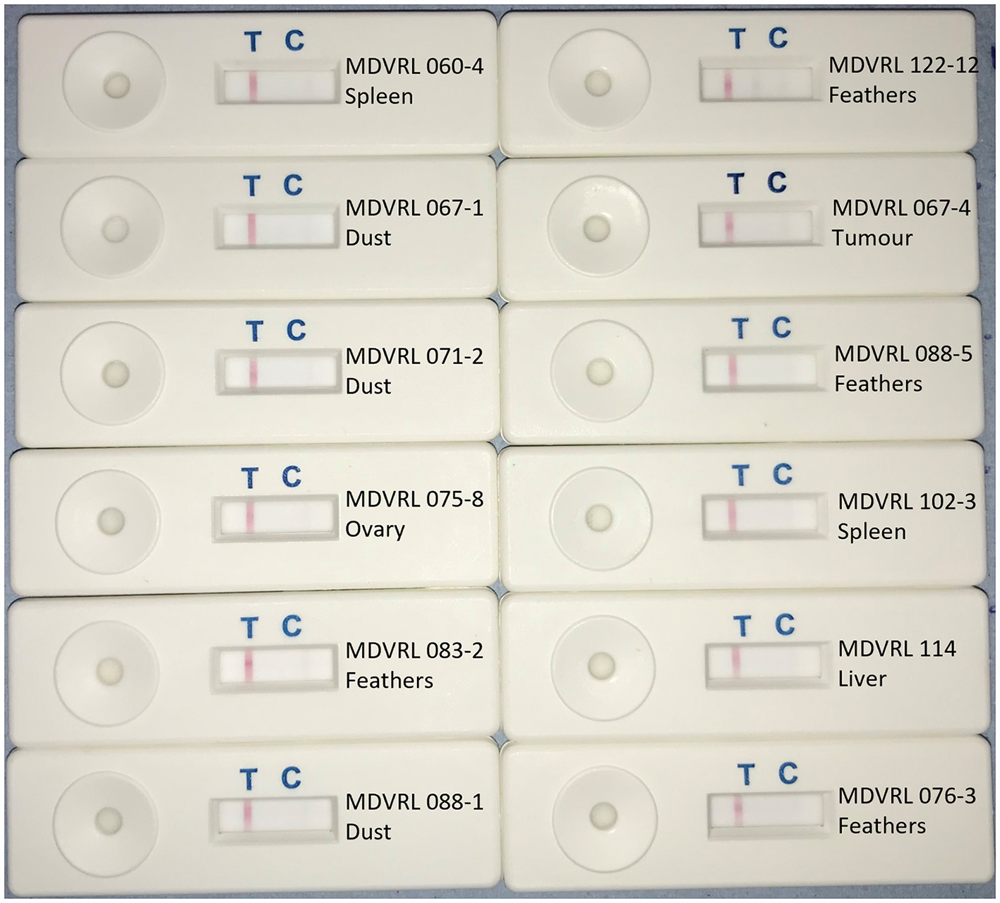 | MDVRL071-2 | Poultry dust | 20 weeks Breed not recorded |