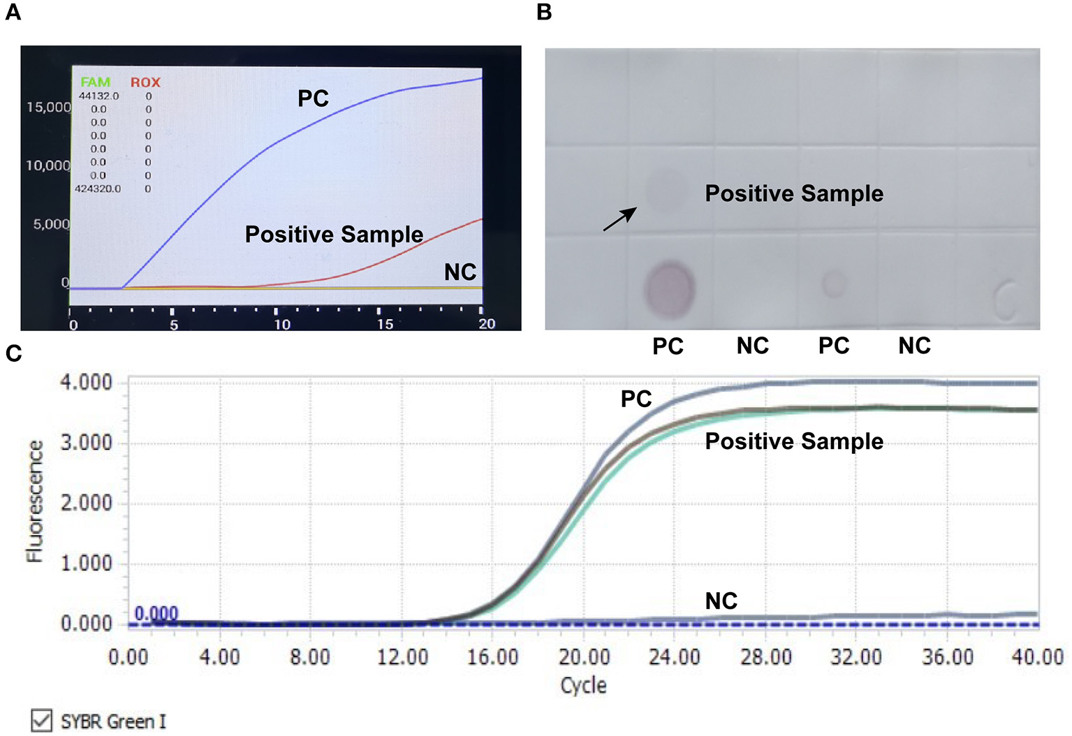 RAA, qPCR assay, and dot blot were employed to detect CIAV contamination in live vaccines. Results showed that a fowlpox attenuated vaccine sample was determined as CIAV positive in all three methods (Figure 1).