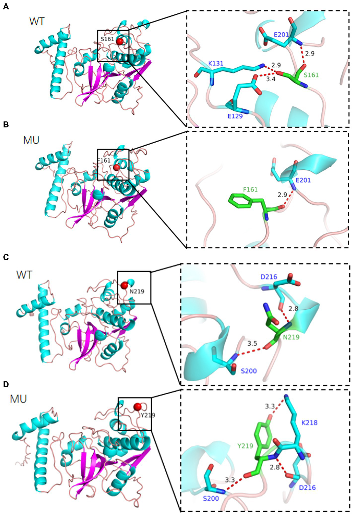 Evaluation of sequencing results and analysis of polymorphic loci in CTSS were performed using SeqMan and MegAlign in DNAStar (16, 17). Effect of non-synonymous single-nucleotide polymorphisms (nsSNPs) on CTSS protein function were predicted using PhD-SNP and SNAP2 (18, 19). I-Mutant 2.0 and MuPro were used to predict the effect of nsSNPs on protein stability (20, 21). Generation of multiple sequence comparisons based on CTSS amino acid sequences was performed using Cluster Omega for assessing CTSS sequence conservation (22). Sopma was used to analyze the secondary structure of CTSS proteins and AlphaFold2 was used to assess the tertiary structure of wild-type and mutant CTSS proteins (23–25).