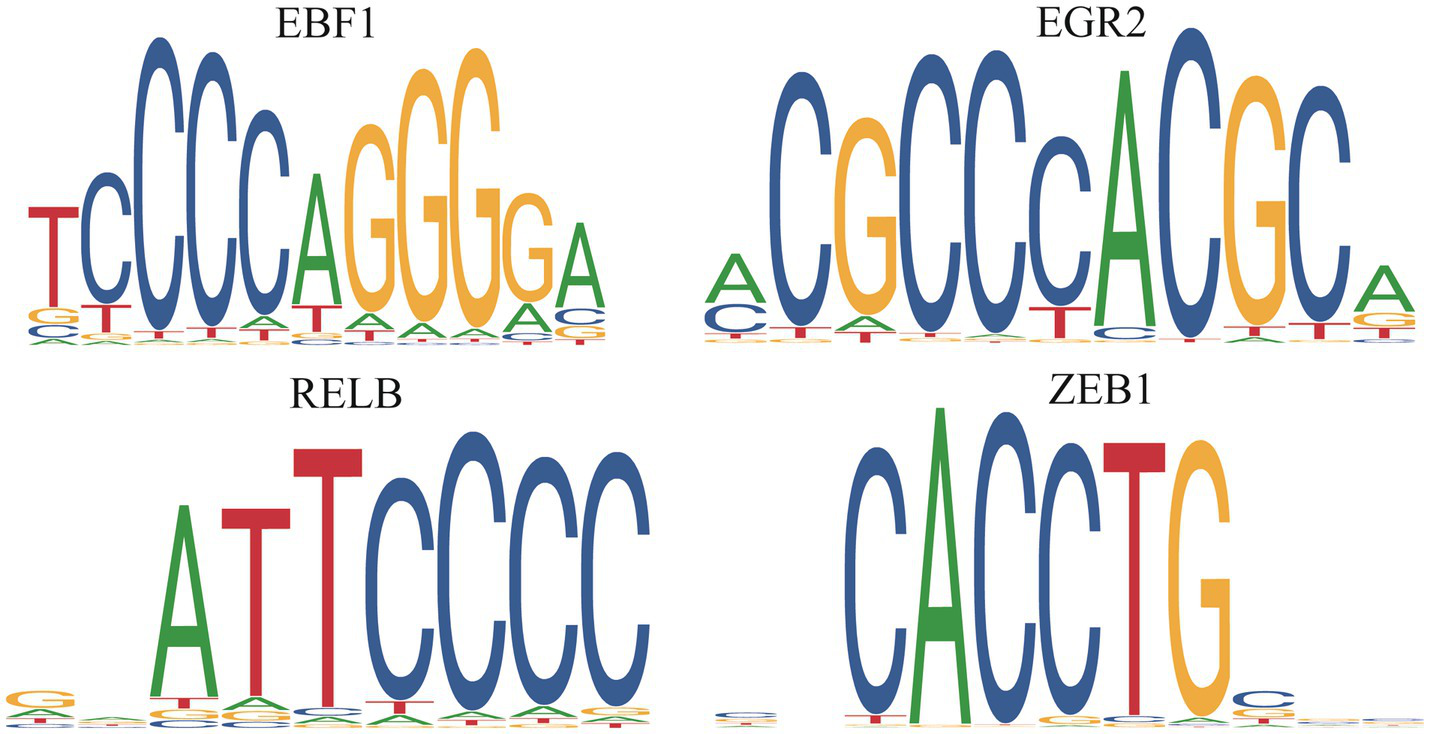 We predicted the TFs bound with DE PCGs and found that 6,585 DE PCGs were enriched in 32 significant motifs (E-value < 0.05), which were annotated by 519 TFs. Among them, 53 TFs were DE PCGs, which were found to co-regulate all DE PCGs (Supplementary Table S5; Figure 8).
