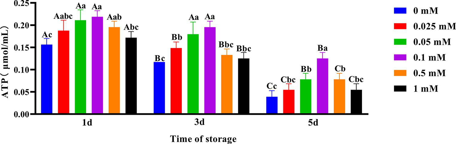 Results showed that the ALH of the 0.1 mM, 0.5 mM and 1 mM groups was significantly higher (p < 0.05) than that of the other groups on the first day. Additionally, there were no significant differences (p > 0.05) in ALH between these three groups. On the third and fifth days, the ALH of the 0.1 mM group was significantly higher (p < 0.05) than that of the 0 mM, 0.025 mM, 0.05 mM and 1 mM groups, but it was not significantly higher (p > 0.05) than the 0.5 mM group.