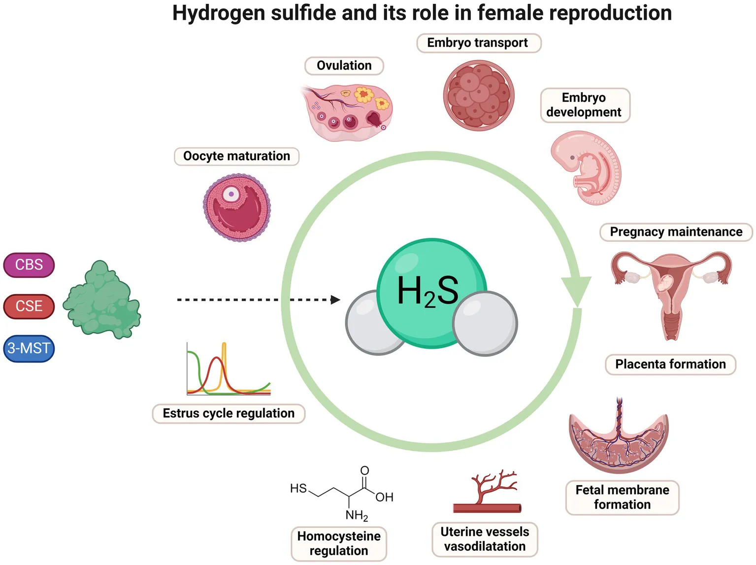 hydrogen sulfide, female reproduction, cystathionine beta synthase, cystathionine gamma lyase, oocyte physiology, early embryo development, uterus, gravidity