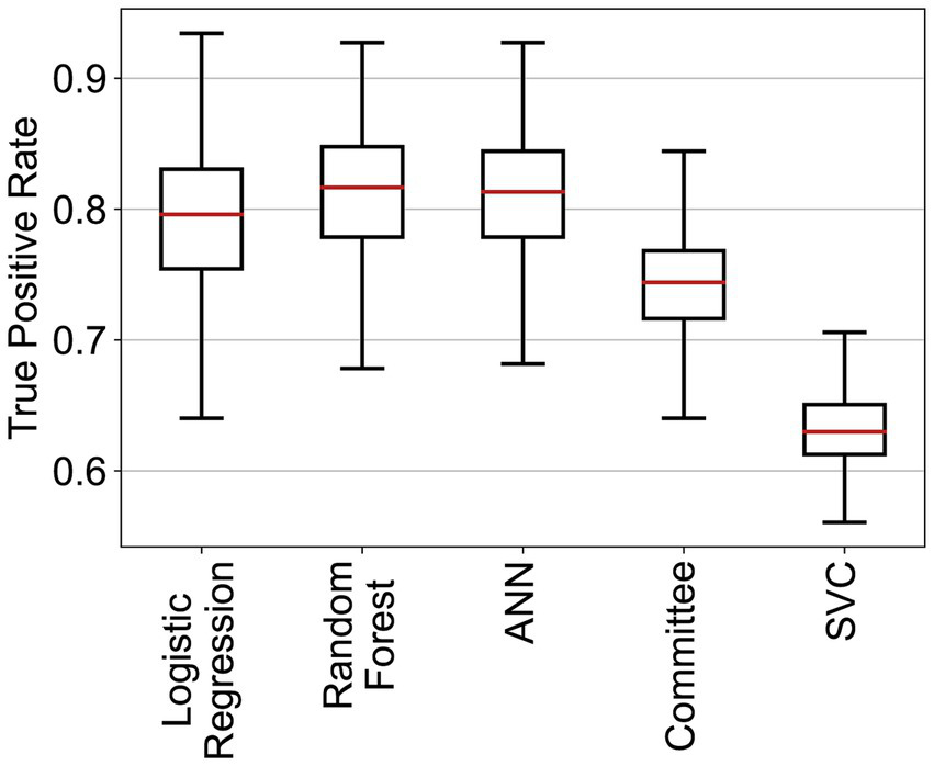 The risk index as described above is a Boolean quantity, and consequently, the computation of the index is therefore a binary-class classification task. The scikit-learn Python library (45) implementation was used for all, but the artificial neural networks (ANNs) for Keras (46) was used.