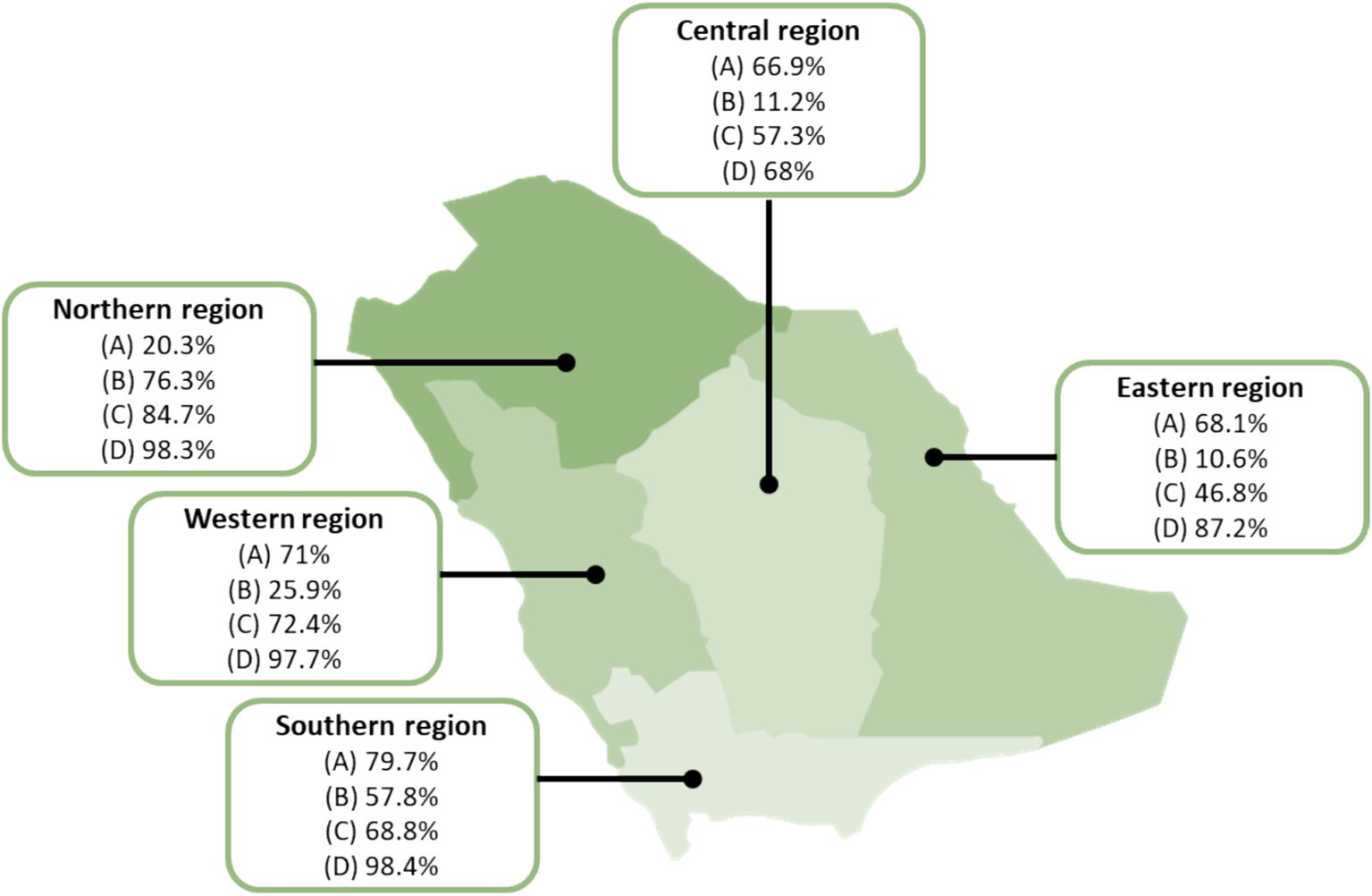 The researchers would like to thank the Deanship of Graduate Studies and Scientific Research at Qassim University for financial support (QU-APC-2024-9/1). We would like to thank Dr. Oscar Madzingira from the Faculty of Agriculture and Natural Resources, School of Veterinary Medicine, University of Namibia for his help with developing the questionnaire. Also, we would like to thank the graphic designer, Ms. Raghad Thabit, for creating the regional map of Saudi Arabia.