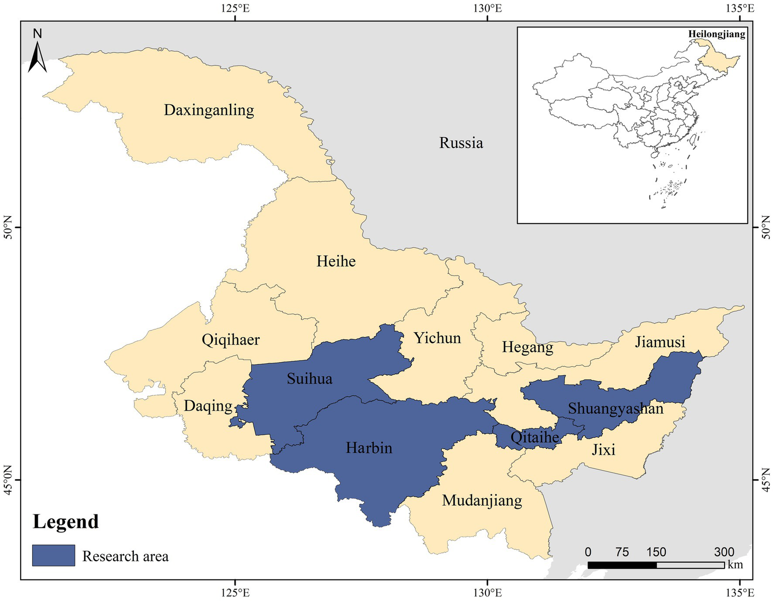 A map that illustrates the locations where Rattus norvegicus was sampled in Heilongjiang Province, China.