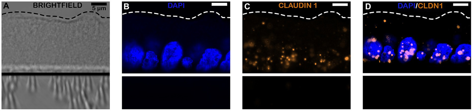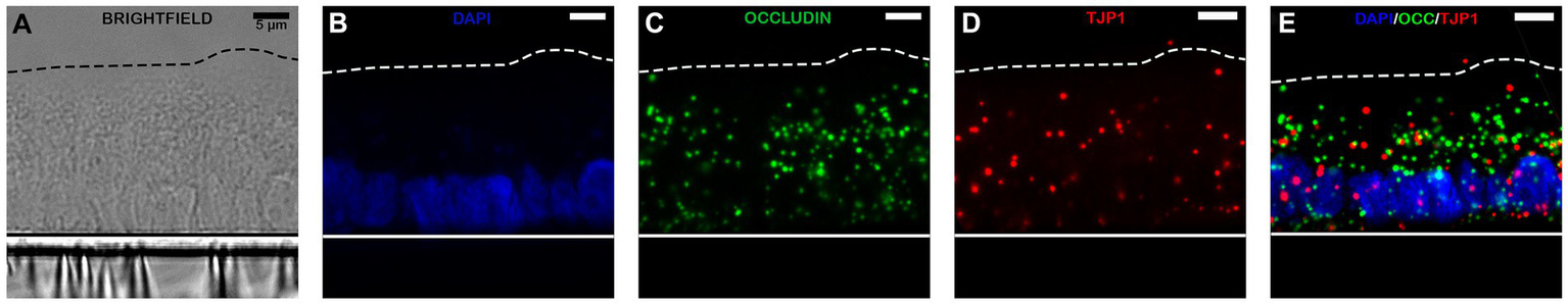 Following initial plating of dissociated 3D jejunal enteroids (Figure 1B), 100% confluent monolayers were achieved by 5–7 days (Figures 1C, 2).