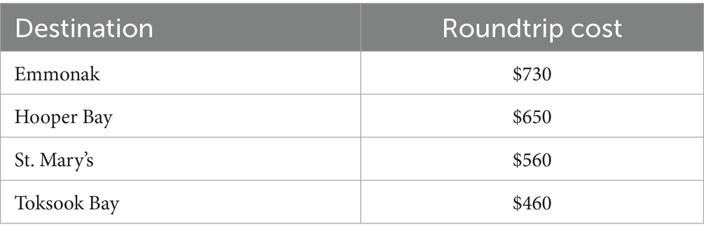 Bethel is the regional service and transportation center of the YK Delta. The Bethel Airport provides flight services to Alaska’s largest city, Anchorage and to villages throughout the region. None of the villages are accessible by road, that is, there are no roads from the villages to Bethel. From the villages, Bethel is only accessible by airplane, boat (in the warmer months), snowmobile (in the winter months), and four-wheeler. Food and supplies are delivered to the villages by air freight, yet these are limited and expensive. Therefore, subsistence methods, the reliance on hunting, fishing, harvesting, and processing of terrestrial and marine mammals, fish, plants, and other natural resources (6, 7) to meet essential and cultural needs, are important in the traditional culture and still remain crucial to the everyday life of Alaska Native Tribes.