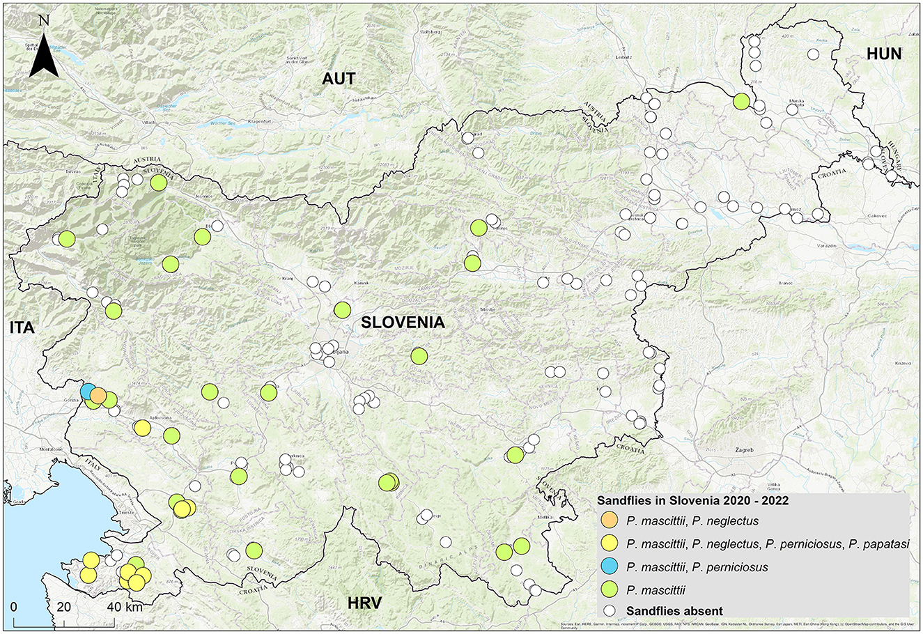 Phlebotomus mascittii has been recorded in Slovenia (11) and in several neighboring countries, including Austria (12–14), Slovakia (15) and Croatia (16) as well as in parts of Germany and Belgium (17–21). Phlebotomus perniciosus is a common species in Italy and Croatia (22), while P. neglectus also occurs in neighboring Croatia (16, 23), Italy (24) and Hungary (25).