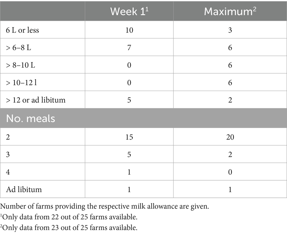 Table 9. Average milk allowance/day in week 1 and maximum milk allowance/day on the participating ES farms (n = 25).
