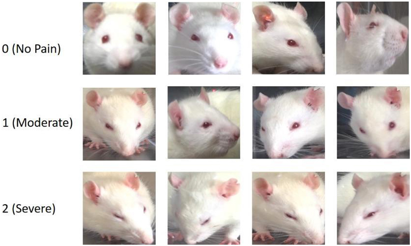 Rats are one of the most widely used animal species in experiments and have made significant contributions to the progress of biological and medical research (1). In various experiments conducted on rats, such as evaluating the effectiveness of painkillers through animal experiments, assessing the degree of pain in rats is crucial and indispensable (2). Facial expressions reveal emotional features such as intensity, valence, and persistence, and are correlated with neuronal activity (3). However, it is necessary to emphasize that there are certain difficulties in assessing pain in rats. Unlike humans, rats cannot express their feelings through language; therefore it is impossible to directly obtain feedback on their level of pain (4). Despite this challenge, researchers have recognized the importance of assessing pain in rats and have developed many effective methods over the past few decades (5, 6).