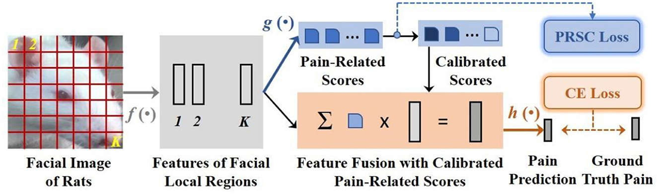 Recently, researchers have increasingly recognized that experimental testing methods for assessing pain in rats have numerous limitations. Therefore, they have been striving to explore whether it is possible to effectively and accurately evaluate the pain status of rats within a short period of time, without being invasive and economically feasible. This exploration benefits from research in the fields of psychology and computer vision on the relationship between individual pain expressions and facial action units, which developed a tool for assessing the degree of pain in rats called the “Rat Pain Expression Scale” (RGS) (13, 14). The RGS is simple to operate and can be completed using only facial expression images of rats. It quantifies the degree of pain in rats through four facial action units (AU) related to pain, and its convenience and effectiveness have been confirmed. In addition, compared with actual behavioral testing methods, RGS can conveniently and quickly assess the pain level of rats based solely on facial expression images, providing a completely non-invasive method that considers animal welfare.