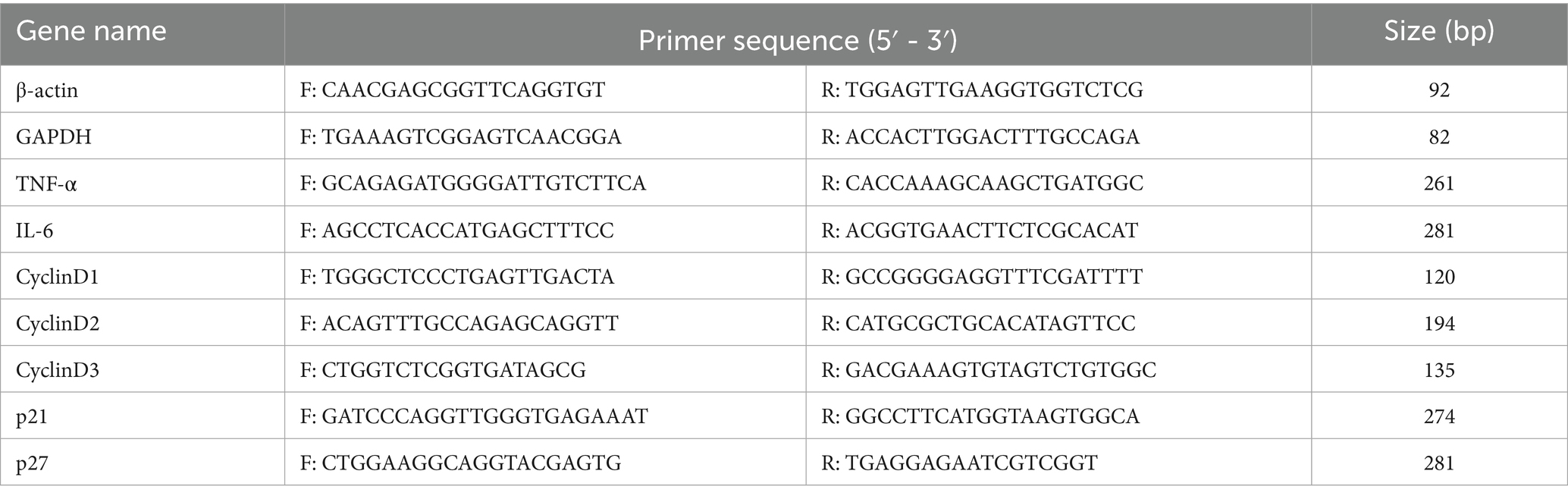 Table 1. Primers for qRT-PCR.