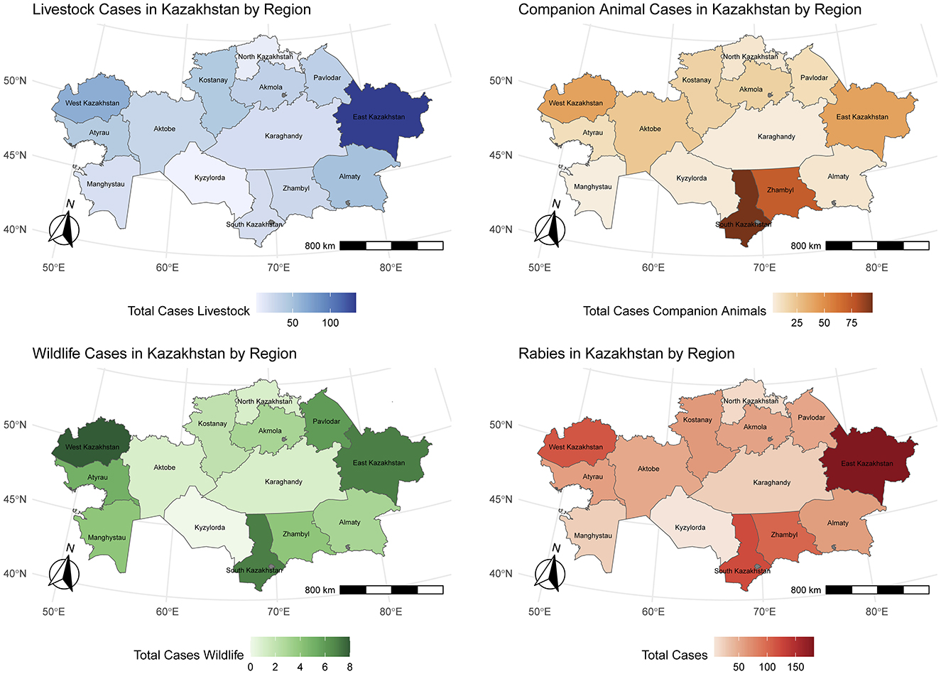 52. Mukhanbetkaliyeva AA, Kabzhanova AM, Kadyrov AS, Mukhanbetkaliyev YY, Bakishev TG, Bainiyazov AA, et al. Application of modern spatio-temporal analysis technologies to identify and visualize patterns of rabies emergence among different animal species in Kazakhstan. Geospat Health. (2024) 19:e1290. doi: 10.4081/gh.2024.1290
