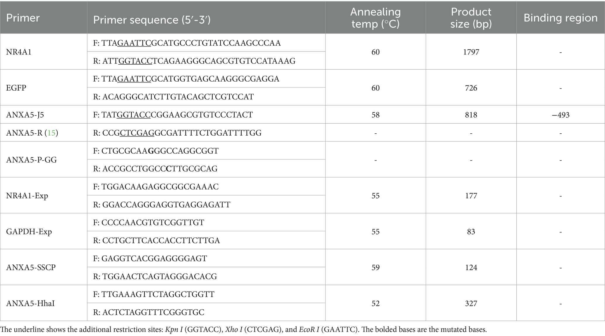 Nuclear receptor subfamily 4 group A Member 1 (NR4A1) is an immediate-early response gene which regulates diverse biological processes, including cell proliferation, apoptosis, and inflammatory responses (24). The current study demonstrated the existence of both NR4A1 and ANXA5 in the piglet’s intestine, and NR4A1 promoted the transcription and expression of porcine ANXA5 in IPEC-J2 cells. It is well known that the spatiotemporal expression of genes is closely linked to their functions. Hence, we presume that NR4A1 might take important part in the intestine development or health partially by regulating the transcription of ANXA5, thereby affecting piglets’ growth. This hypothesis was supported by literature. For example, both NR4A1 and ANXA5 were associated with ulcerative colitis (UC) (8, 25); NR4A1 expressed in intestine tissues, inflammatory cells and epithelium (26, 27), regulated the differentiation and function of Paneth cell (28); ANXA5 had differential expression in the jejunal mucosa of IUGR and normal piglets (10).