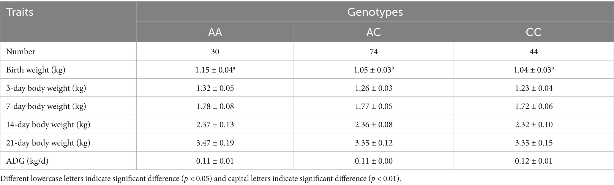 4.1 Effects of g.-674 C > A and g.-519 A > G on piglet growth