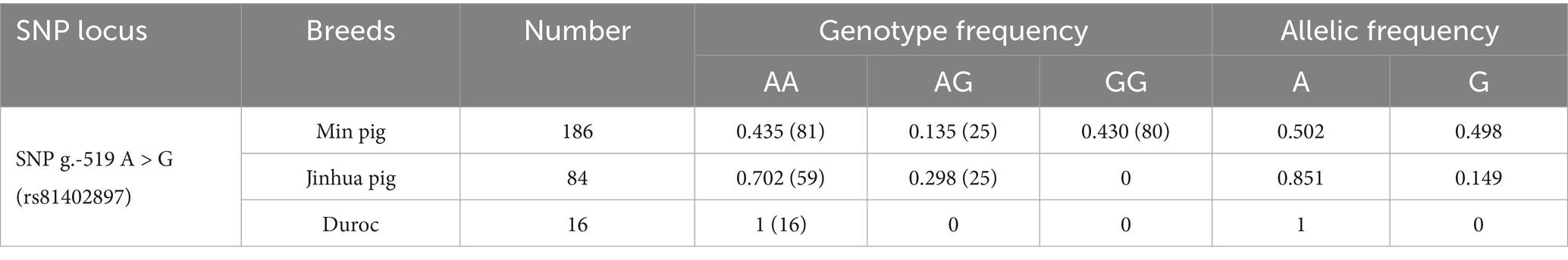 3.2 g.-519 A > G in the promoter of ANXA5 was associated with piglets’ weight in Min pigs