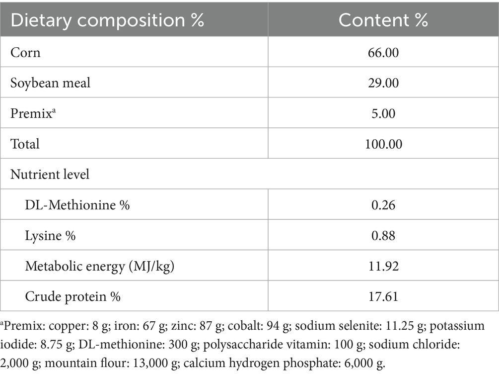According to the method described by Tang et al. (7), Hematoxylin–Eosin (H&E) staining method was used for observation. Three centimeters of ileal tissue was cut, and the inner wall of the intestine was gently flushed with saline, the operation process should be avoided to damage the intestinal mucosa as much as possible. Finally, tissue sections were made and observed with an optical microscope (Olympus BX63, 40 × 10).