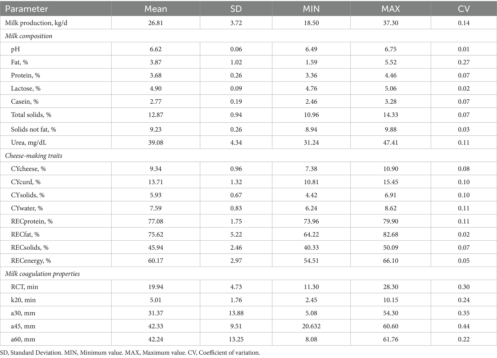 Table 3. Descriptive statistics of milk composition, cheese-making traits and milk coagulation properties.