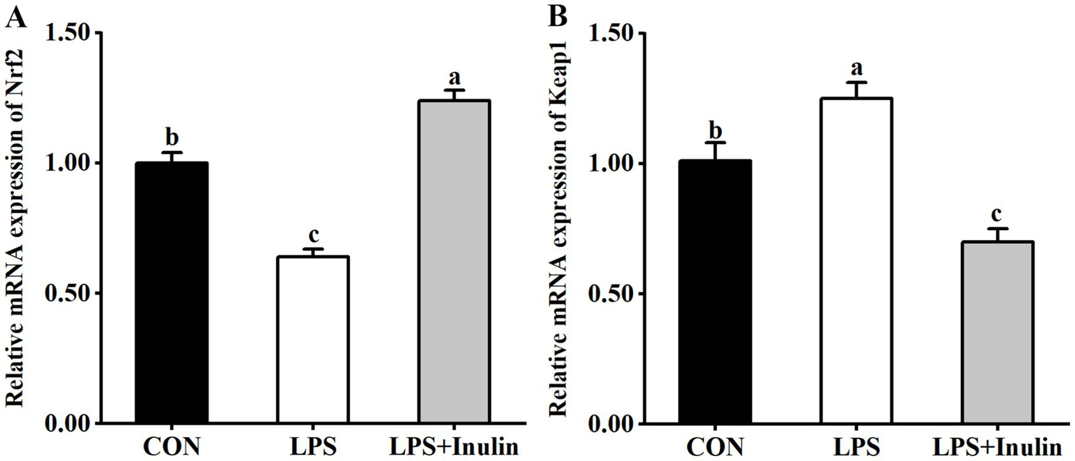 The results showed that LPS administration inhibited activities of antioxidant enzymes and stimulated production of lipid peroxidation in multiple tissues including serum, liver, intestine, and muscle. Dietary inulin supplementation partially alleviated the negative effects of LPS on antioxidant capacity of these tissues, with the underlying mechanism involving the regulation of the Nrf2 signaling pathway.