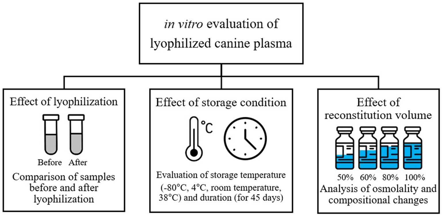 Figure 1. Study design for in vitro evaluation of lyophilized canine plasma stability and clinical applicability.