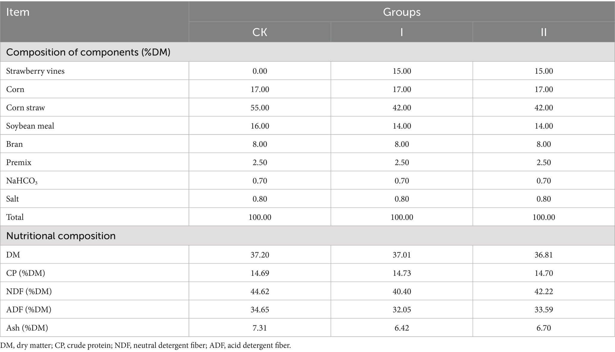 • Treatment I group: Basal diet + 15% L. plantarum-fermented strawberry vines silage.