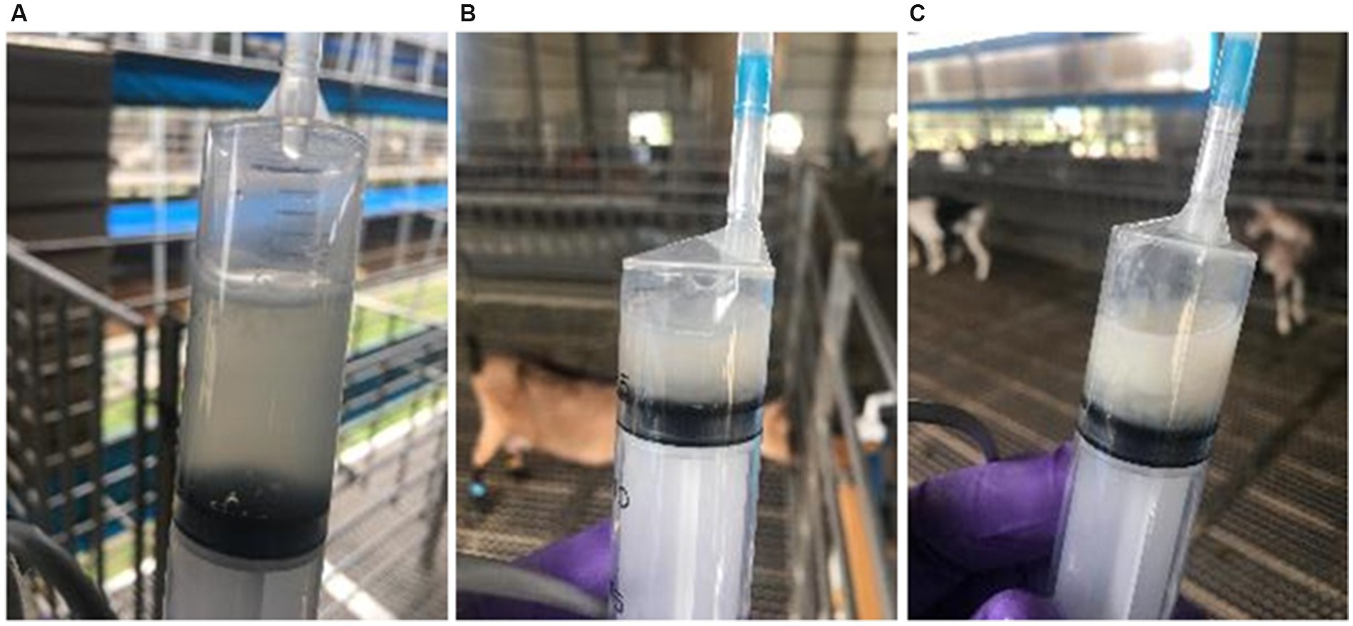Prior to insemination, vaginal mucus was evaluated visually by the technician, with the aid of a speculum and sorted into 3 categories (Figure 2):
