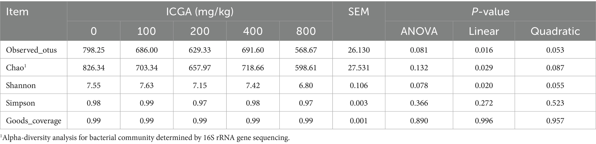 Table 7. Effects of isochlorogenic acid (ICGA) supplementation on the α-diversity1 of microbial communities of weaning piglets in colonic digesta.