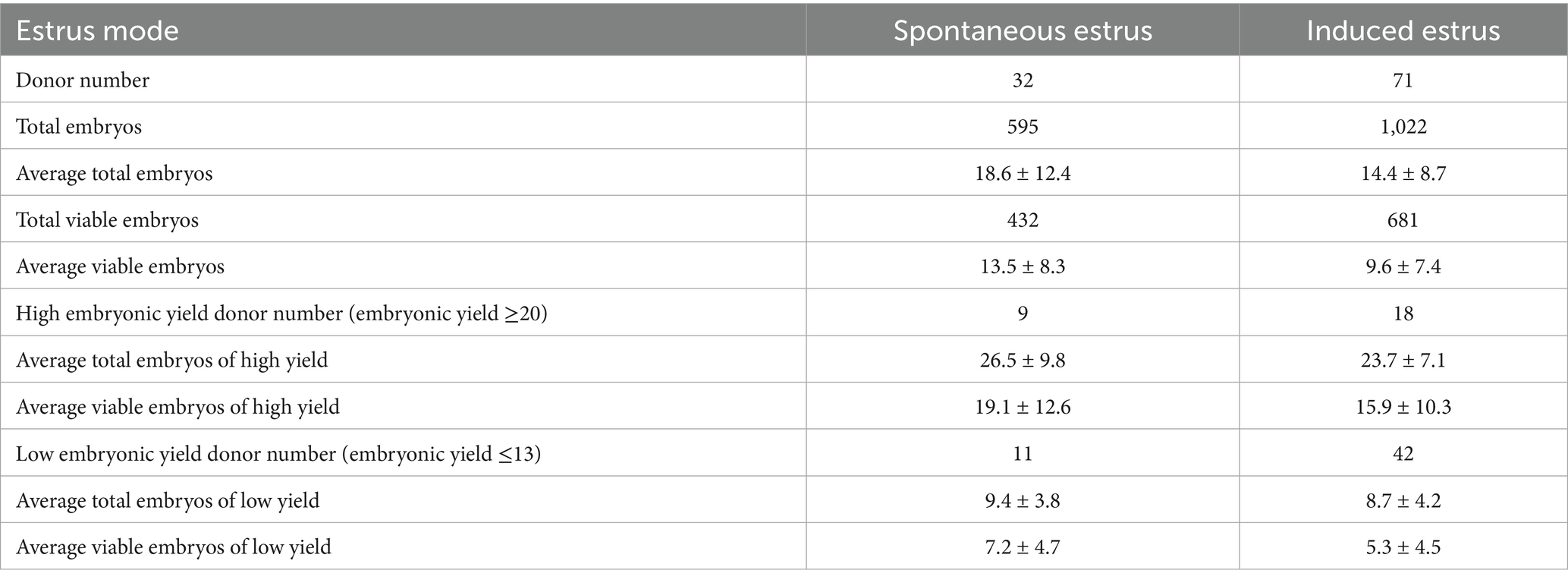 In livestock breeding, the propagation of excellent individuals is necessary. The reproductive rate of sheep is relatively low. Therefore, the application of superovulation technology has been shown to be useful for the rapid propagation of high-quality sheep. However, the outcome of superovulation is inconsistent, which may be attributable to multiple factors, including breed, administration protocols, age, hormone source and purity, nutritional status, and reproductive status (1). Despite implementing strict screening conditions for donors and maintaining consistent processes, individual outcomes can vary widely. Therefore, the exploration of better strategies for donor selection or outcome prediction is particularly necessary to improve the efficiency of superovulation.