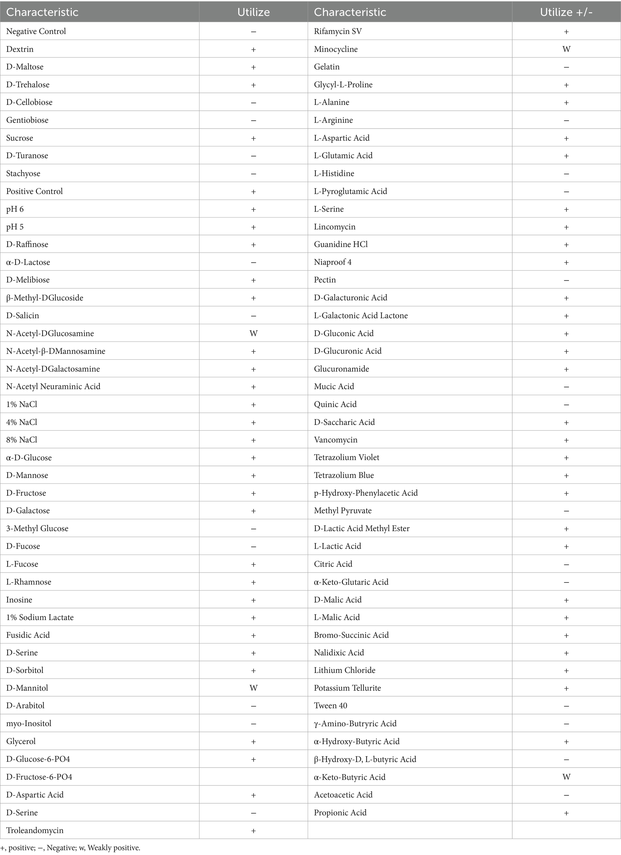 Table 1. Utilization of the carbon sources on BIOLOG GENIII MicroPlate.