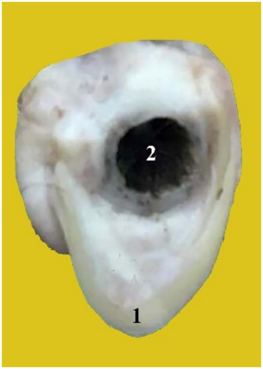 The external auditory meatus is oval, large, curved, and directed ventrally before angling medio-rostrally (Figure 3, 2). It consists of two sections, the cartilage and the osseous. In the dromedary camel, this structure is relatively long, similar to findings reported in Bactrian camels (24). The external auditory meatus extends from the outer ear to the tympanic membrane (eardrum membrane). The outer part of the ear canal is the annular cartilage, whereas the inner section of the canal is the internal acoustic meatus, which passes through the temporal bone (13, 25). The anatomical significance of the external acoustic meatus lies in its role in facilitating easy examination of the tympanic cavity (26, 27). The width and length of the external acoustic canal provide an explanation for why infections, eardrum lesions, and epidemics are prevented from spreading quickly.