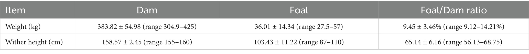 3.1 Pregnancy duration and the weights and heights of mares, foals, and the placenta