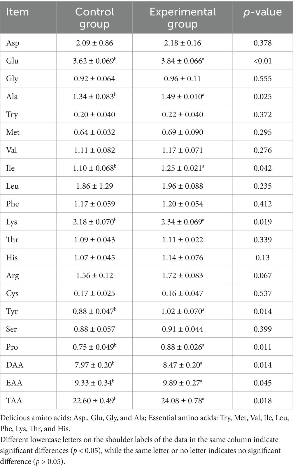 3.6 Effects of AFF on the muscle amino acid composition of Taoyuan Black pigs during the late fattening period