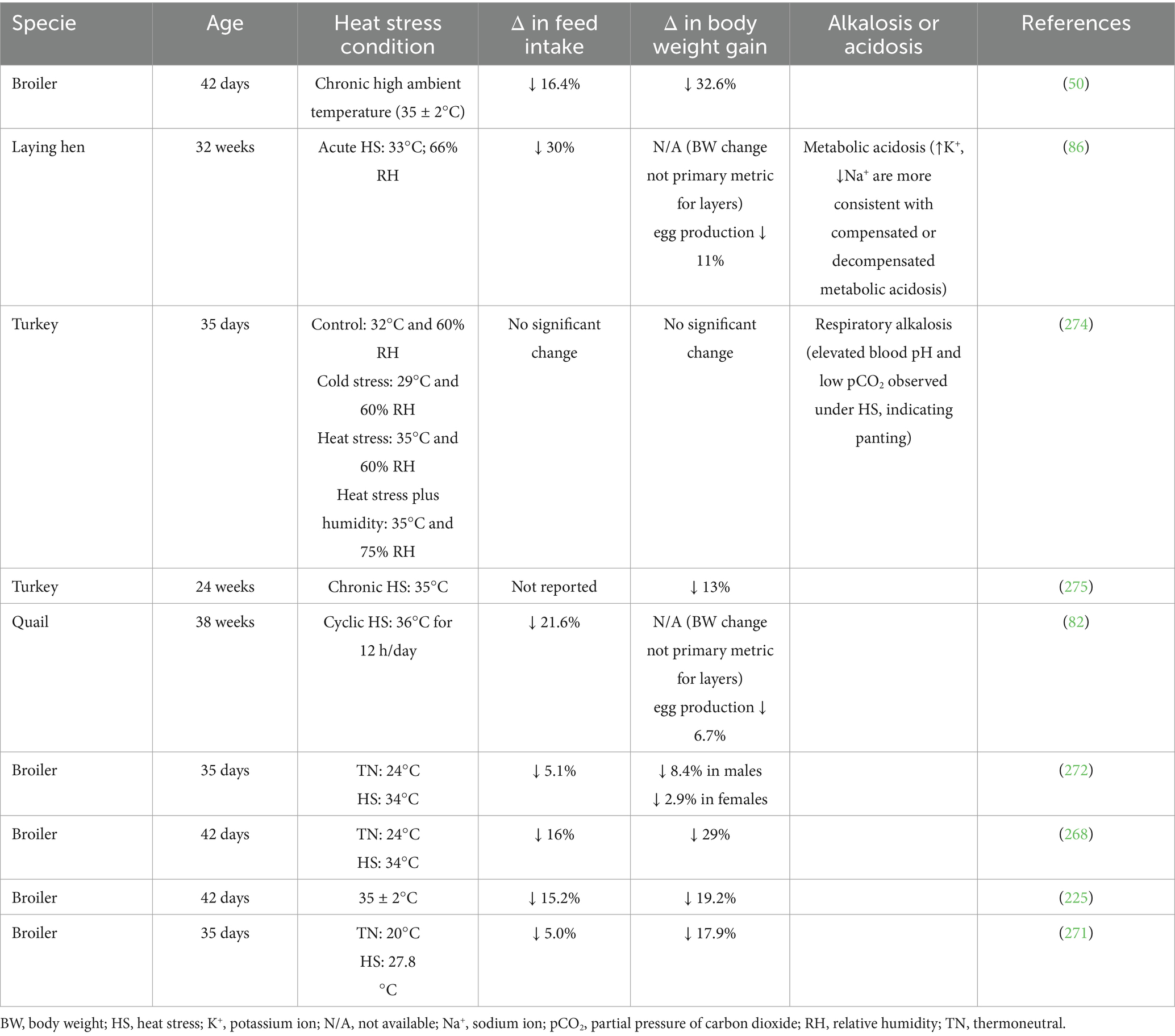260. Teeter, RG, Smith, MO, Owens, FN, Arp, SC, Sangiah, S, and Breazile, JE. Chronic heat stress and respiratory alkalosis: occurrence and treatment in broiler chicks. Poult Sci. (1985) 64:1060–4. doi: 10.3382/ps.0641060