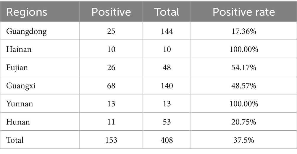 Table 1. Regional distribution of clinical samples collected for CIAV surveillance in Southern China (2023–2024).