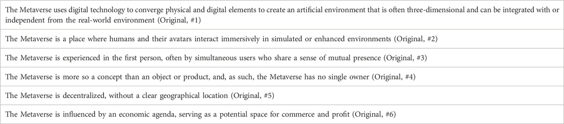 Six statements defining the Metaverse reached consensus; see Table 2.