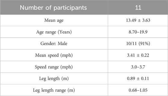 Demographic characteristics are presented in Table 1. All 11 participants were included in data analysis. Ten participants were male, one participant was female. Participant age ranged from 8 to 19 years (13.49 ± 3.63; Table 1). Participants’ activity levels prior to this study were limited, as many did not partake in any organized sports or extracurricular exercise outside of the twice weekly 50-min sessions occurring at ISF. As the participants were recruited from ISF, they all had some previous interactions with VR.