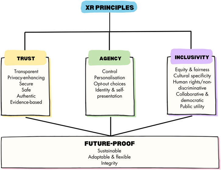 The purpose of these principles for policy of XR is to help governments and policymakers get ahead of the trend and be proactive rather than reactive. Over the last 3 decades, each major development in dominant social technology (e.g., internet for the general public, mobile computing, AI) has created new and unique challenges that policy and law have yet to be equipped to govern due to their rapid developments. As policy implementation has been catching up with the technology, this often means that harm occurs to certain users before a safety net is in place, or alternatively, that users feel that freedoms are being removed as policy comes into effect. With technologies such as XR and AI that are orders of magnitude more powerful than mobile computing or the internet, it is critical that policy preempts these fallibilities and legislates early, to aid developers and users to create XR that is trustworthy, inclusive, and agentic. As it is impossible for us to know exactly how the technical landscape will progress, these principles must be futureproof. We see three main components that bind and underpin these principles, if they are to be futureproof. Each of these components can be seen as overarching and relevant to all the principles documented thus far, and without which, would undermine the foundations of each principle.