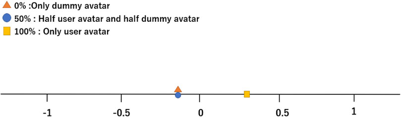 Table 2. Results of the integral comparison method for presence evaluation under different avatar ratio conditions. Higher scores indicate a greater sense of presence.