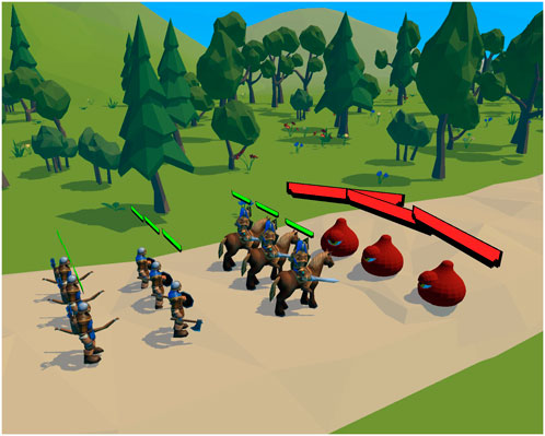 To diversify the gameplay, we added cavalry units to the player’s army, complementing the existing infantry and archers (represented in Figure 1). Cavalry units, the fastest and strongest soldiers, require a more complicated rhythmic mastery of six beats with different tempi for creation. We also added two cannons to the defensive wall. Their use is limited by the fact that a player has to craft the cannonballs in a mini-game that is only accessible every 90 s. Both the cavalry units and the cannonball mechanic are interwoven with the game’s storyline, adding to the immersion and depth of the game.