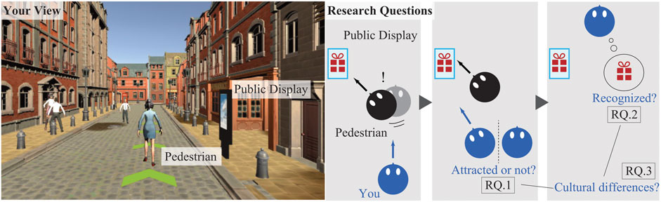 Keywords: honey-pot effect, public display, virtual reality, pedestrian attention, cultural comparison