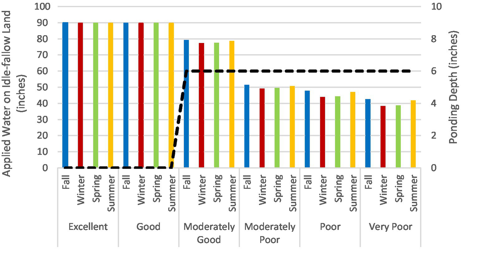 Up to six inches (15.24 cm) of ponding depth in fallow lands. The six inches (15.24 cm) of ponding depth reflects the maximum height of standing water in the field that growers can manage with small field berms.