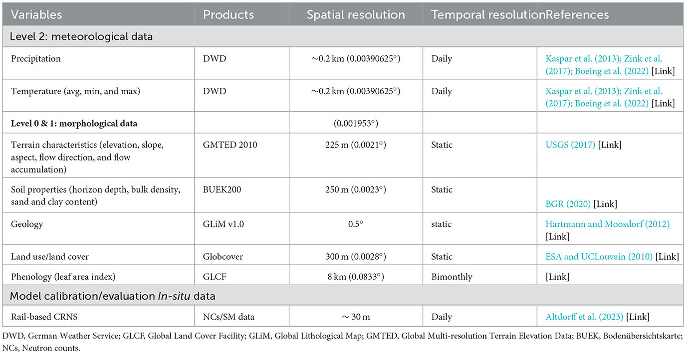 Table 1. Overview of the input data used in mHM, including their spatial resolutions and data sources.