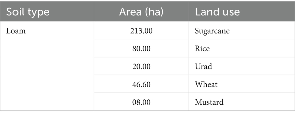 The present study focuses in Shahpur block of Western Uttar Pradesh, a region characterized by high water-intensive crops such as sugarcane, rice, and wheat. Groundwater levels in the region have been rapidly declining due to over-extraction. As groundwater levels decline, farmers are forced to invest in more powerful submersible pumps, increasing both energy and financial costs (Kumar M. D. et al., 2020a; Kumar R. et al., 2020a; Singh et al., 2021). Several pockets in the district are categorized as over-exploited, semi-critical, or fall under the dark zone classification. Given ongoing population growth and agricultural intensification, groundwater withdrawals are expected to rise further. It is crucial to assess the effectiveness of water-saving technologies and practices in maintaining regional groundwater balance.