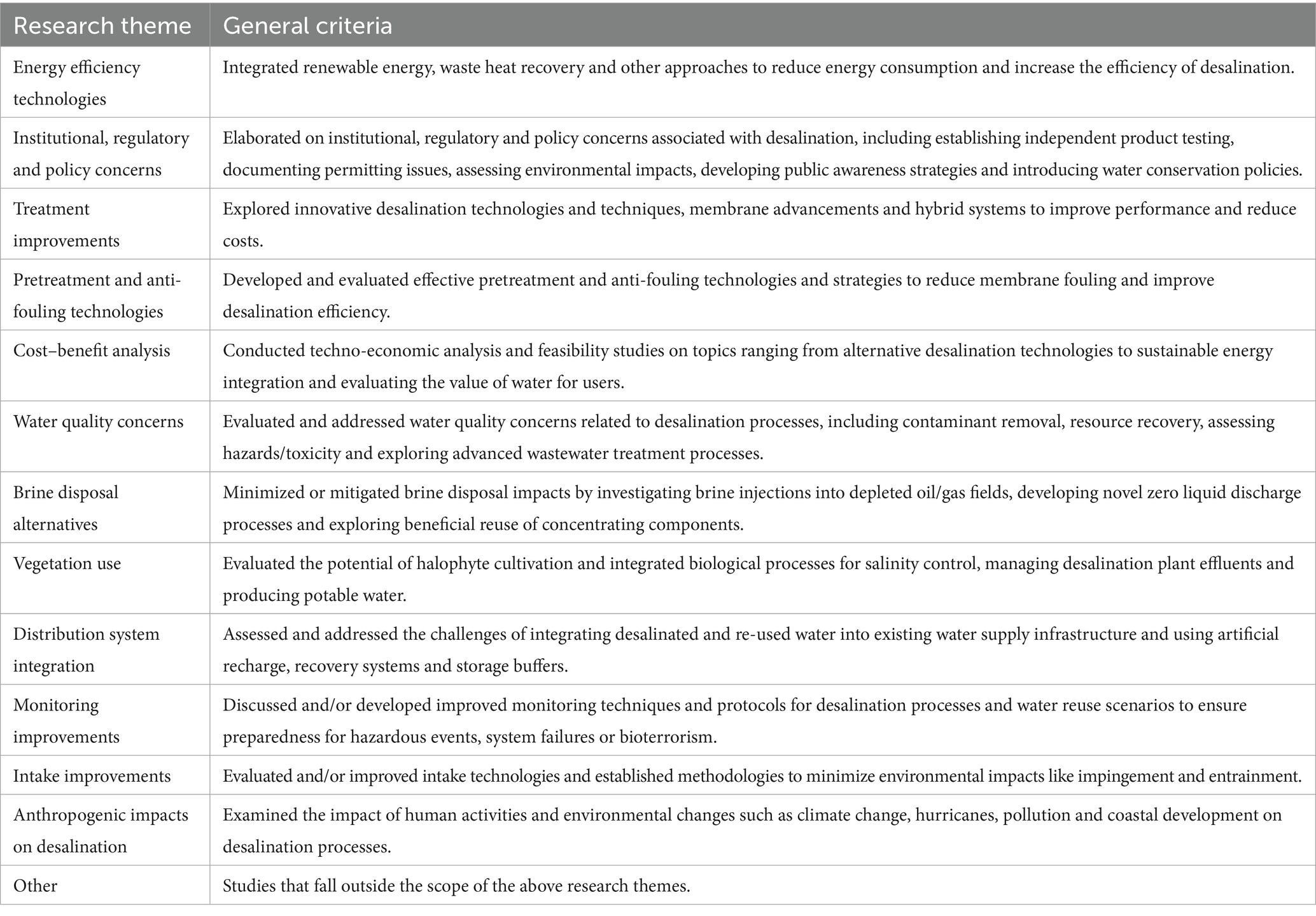 Table 1. Criteria for categorizing desalination publications into 13 research themes (see Supplementary Table S3 for further details).