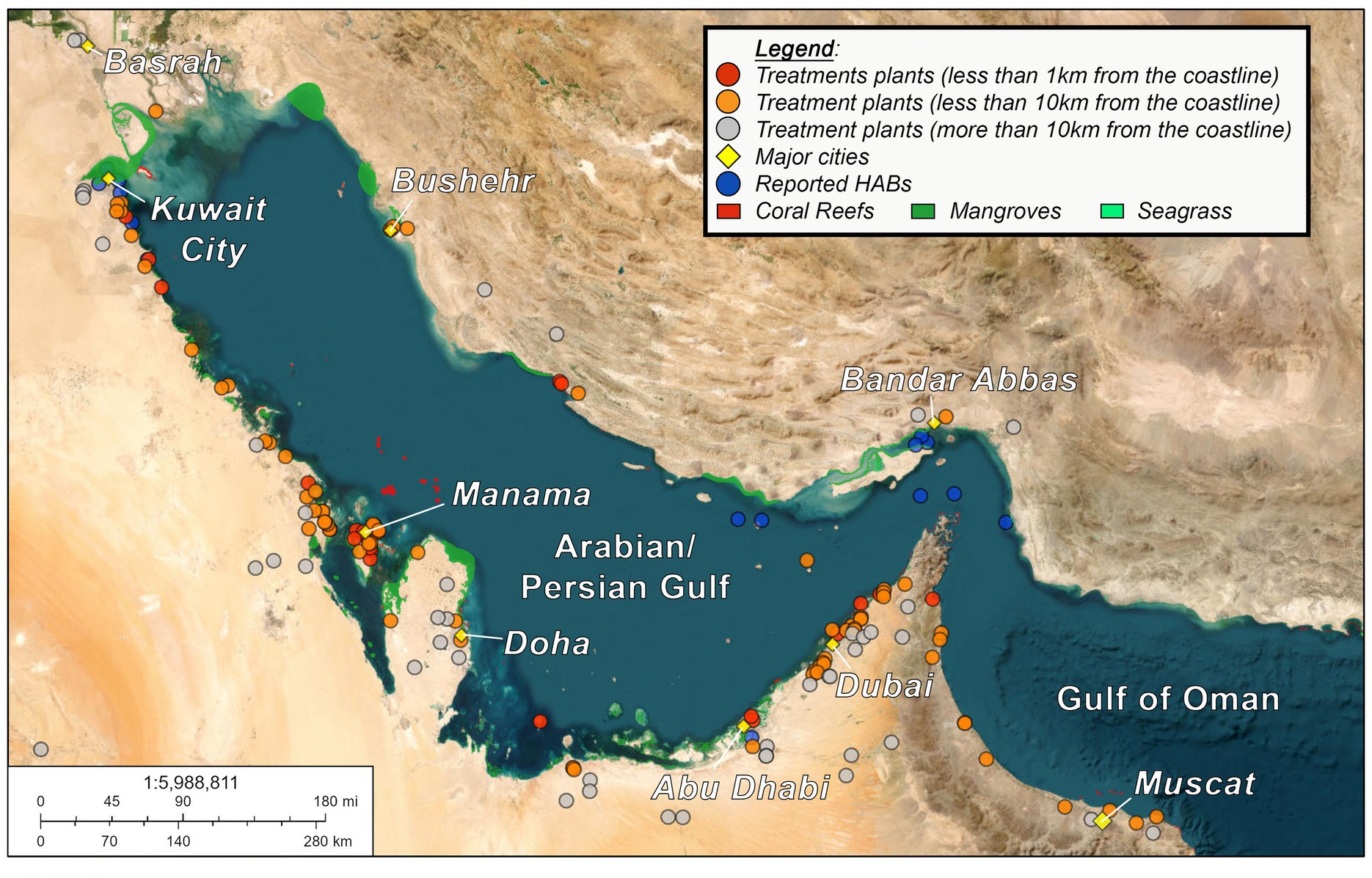 Keywords: wastewater discharge, eutrophication, harmful algal blooms, hypoxia, biodiversity loss, semi-enclosed seas, Arabian Gulf, Persian Gulf