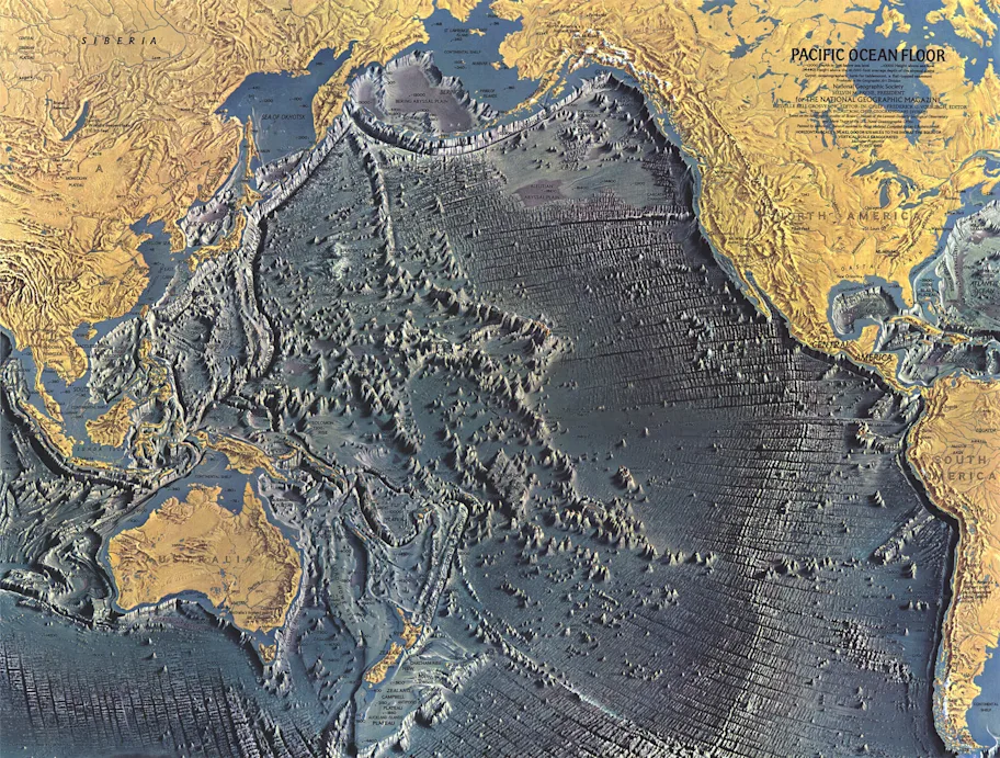 It was several years before Tharp and Heezen’s findings really took acceptance in the mainstream geoscientific community; a series of ocean floor maps commissioned by National Geographic in 1967 based on Tharp’s work cemented this acceptance. In 1997, the US Library of Congress listed Tharp as one of the four greatest cartographers of the 20th century. Seeing one of her pieces hanging next to pages from the journal of Lewis Clark and an original draft of the Declaration of Independence, she wept.