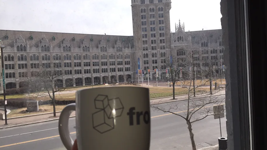 Frontiers for Young Minds staff raising a glass from the Albany office.